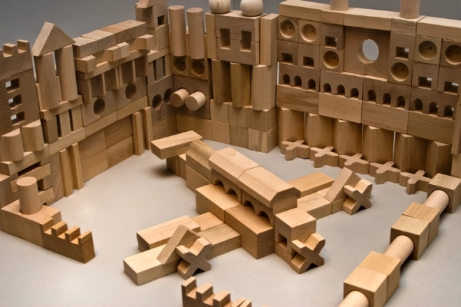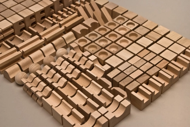 EkoToys wooden blocks offer endless possibilities for creating and learning. Thanks to the diverse shapes, children practice logical thinking, fine motor skills, and spatial imagination. Natural beech wood is durable, pleasant to the touch, and safe for the youngest.