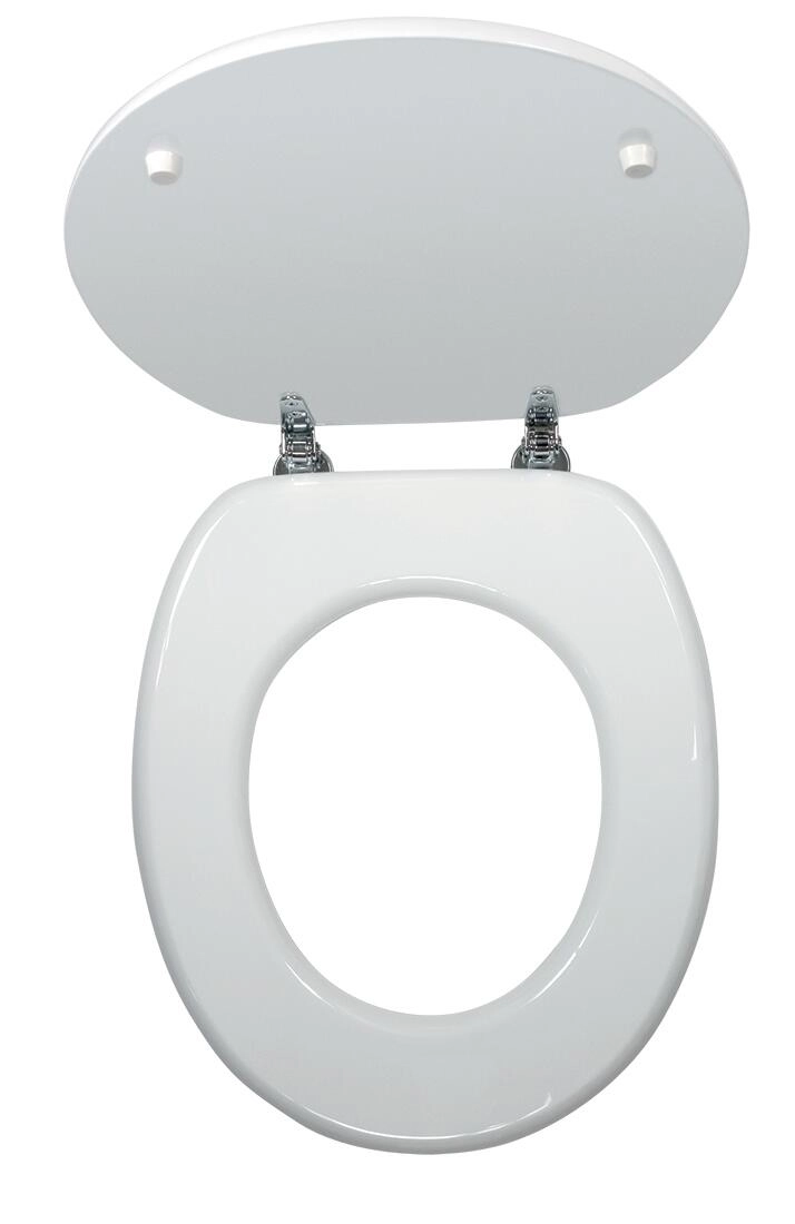 Enhance the look and comfort of your toilet with this durable MDF toilet seat in universal white. The MDF material provides a pleasant surface, good stability, and long service life, while the chrome-plated brass hinges ensure a firm and reliable attachment.