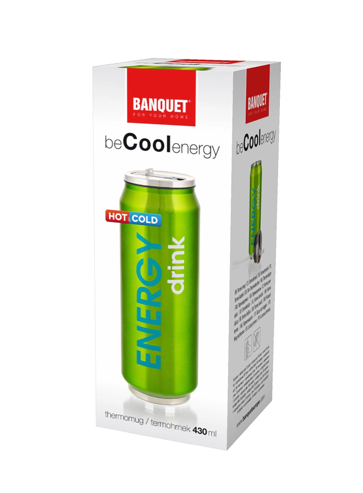 The BE COOL ENERGY thermal mug with a volume of 430 ml combines a modern can design with reliable thermal insulation. The double-walled stainless body protects drink temperature and is resistant to impacts and everyday wear. The green finish looks fresh and complements your active lifestyle.