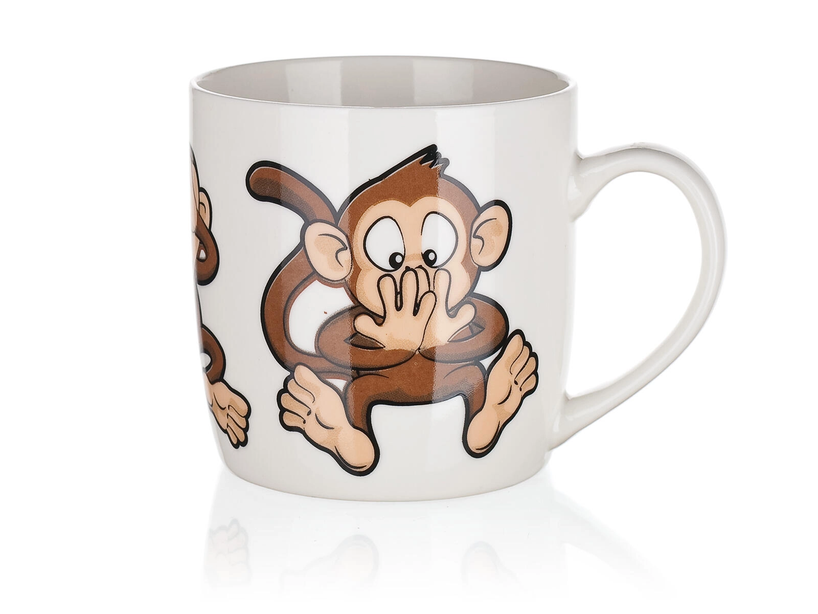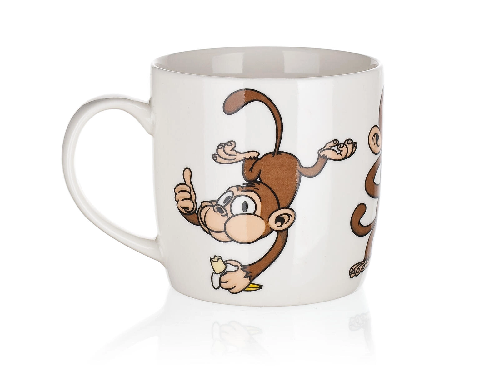 A cute 320 ml ceramic mug with a playful monkey motif will delight both kids and adults. Ideal for everyday use – for coffee, tea, or cocoa. Choose from a mix of cheerful designs, each with a glossy glaze and a comfortable handle. Suitable for hot and cold drinks and perfect as a gift.