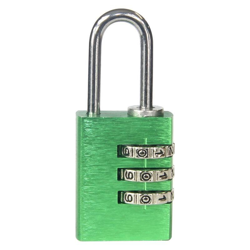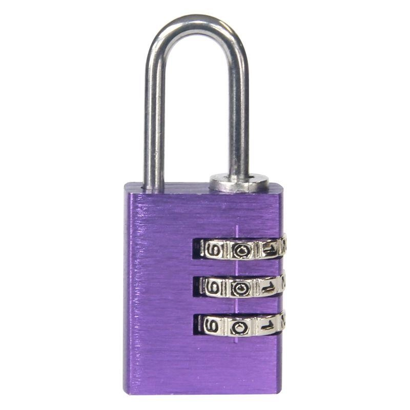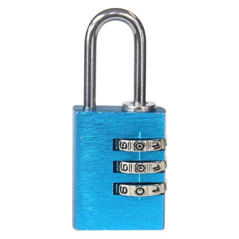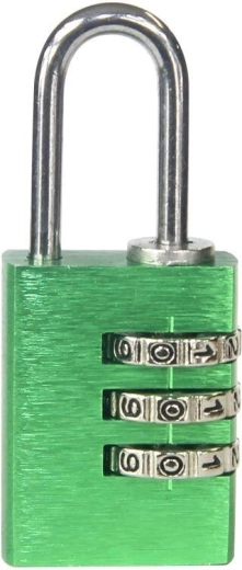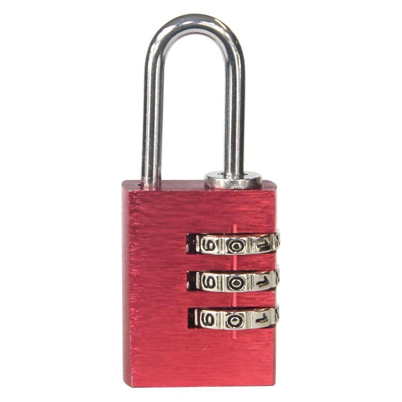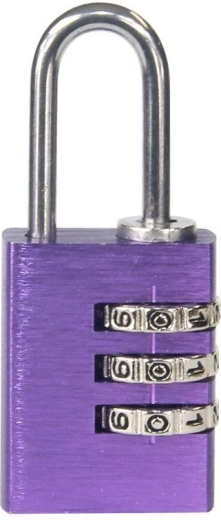 Practical padlock with a 3-digit combination mechanism and up to 1,000 combinations for securely locking lockers, luggage, or boxes. Lightweight aluminum construction, keyless operation, and easy code reset. Available in a mix of colors for quick identification.
