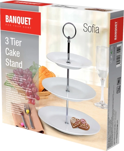 This three-tier round Sofia stand adds a touch of elegance to your table setting. The pure white porcelain plates shine in both modern and classic interiors and beautifully highlight your treats. It’s perfect for cookies, macarons, pastries, and fruit.
