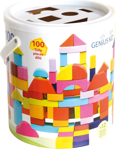 Wooden building blocks in a bucket – 100 pcs, new colors