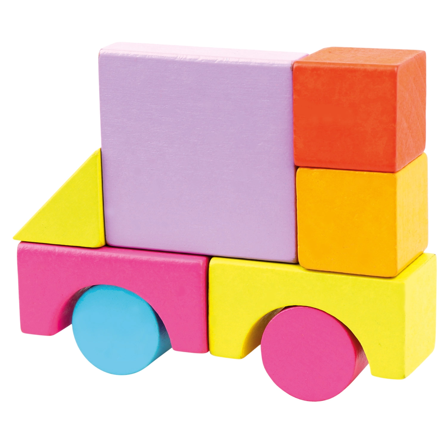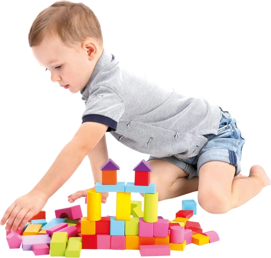 Ideal for children from 1 year: the blocks have a pleasantly smooth surface, vibrant non-toxic colors, and a varied range of shapes—from cubes and cuboids to cylinders, arches, and triangles. Playing with blocks supports the development of spatial awareness, creativity, and hand–eye coordination.