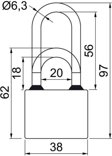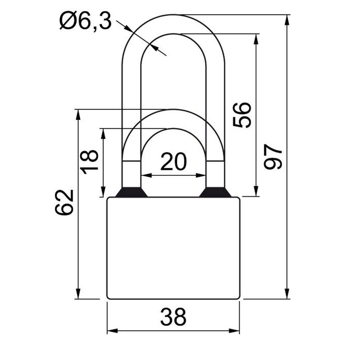 The RICHTER OVAL 38 padlock is a reliable choice for everyday security of sheds, lockers, gates, or storage areas. The cast-iron body with a blue powder-coat finish resists weathering well, and rubber rings further protect the mechanism from water ingress.