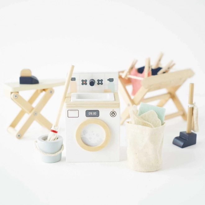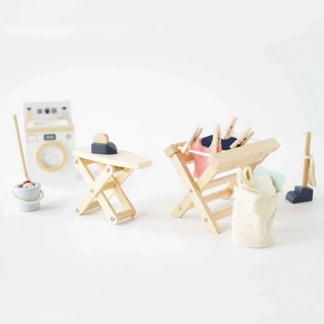 The laundry furniture set brings children a realistic yet creative play experience. High-quality craftsmanship from sustainable materials and attention to detail ensure long-lasting durability and a beautiful look in any dollhouse. Thanks to accessories like the washing machine, drying rack, and iron, kids can practice fine motor skills and coordination while developing imagination.