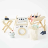 Turn kids’ laundry time into fun with this beautiful laundry set from Le Toy Van. The 16-piece set made from FSC-certified wood includes a washing machine, drying rack, iron with ironing board, pegs, felt clothes, a brush and bucket, a vacuum cleaner, and more accessories. The toy is hand-finished with eco-friendly paints, safe for children, and fits perfectly with Le Toy Van dollhouses from the Daisylane collection.
