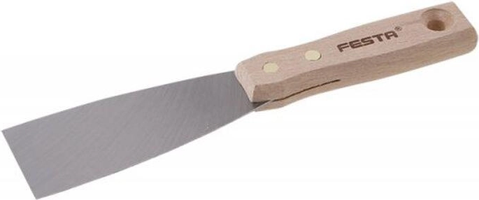 The practical and reliable FESTA putty knife makes any renovation and painting task easier. Thanks to its sturdy steel blade and comfortable wooden handle, you can achieve precise application of fillers and efficient removal of old coatings.