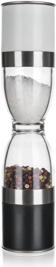 Discover 2-in-1 convenience: a single tool for grinding salt and pepper from either end. The transparent chambers instantly show the contents and their level, so you know exactly when to refill. The stainless steel look fits perfectly in a modern kitchen, and the ceramic mechanism ensures even, long-lasting grinding.