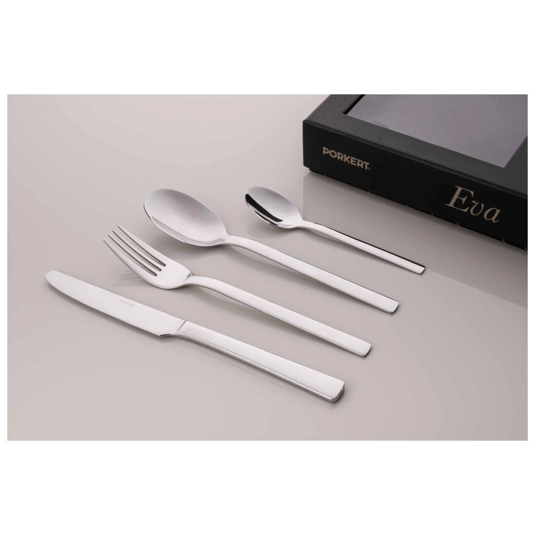 Return to simple elegance with the Eva cutlery set. Timeless shapes, clean lines, and precise craftsmanship ensure this set becomes a natural part of your table. High-grade stainless steel guarantees long service life and easy maintenance.