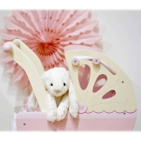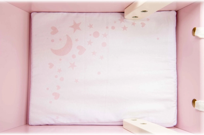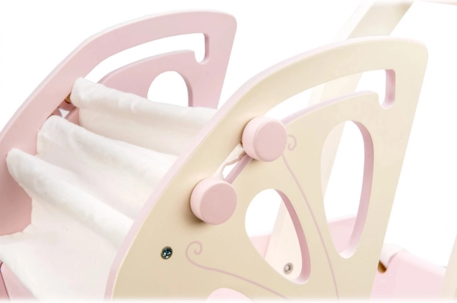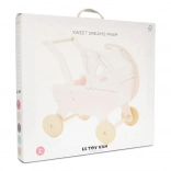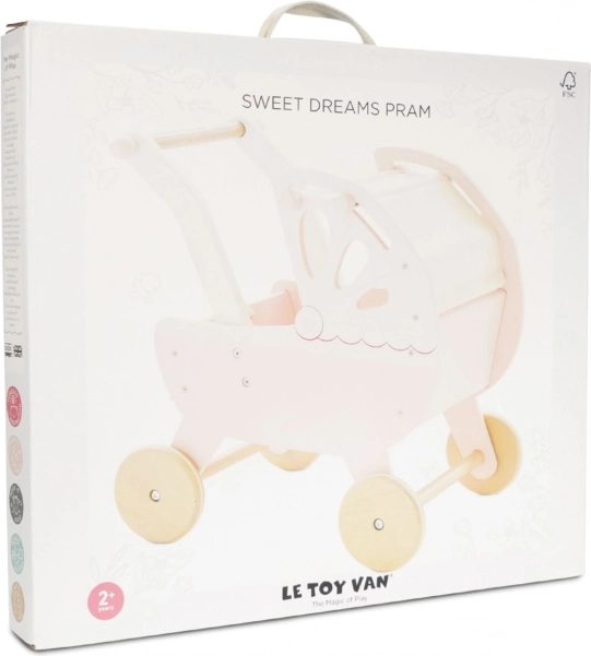 Give children the magic of imaginative play with the Sweet Dreams pram, featuring a delicate design with hearts and lace, a stable wooden construction, and practical details for everyday “walks” with dolls. Thanks to the rubber-coated wheels, the ride is quiet and smooth on all surfaces.
