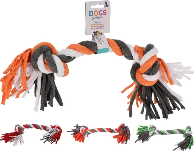 Durable rope toy for dogs with knots, ideal for tugging, fetch, and training. Features a strong polyester rope, comfortable grip, and fun for active dogs. Available in a mix of colors for an attractive look.