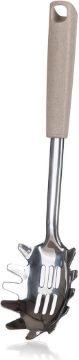 A practical spaghetti server from the Natural line combines stainless steel for long-lasting durability with a handle made of polypropylene with wheat bran for a comfortable grip. It is ideal for professional and home use, easy to maintain, and dishwasher safe. Its simple, functional design ensures timelessness and high durability.