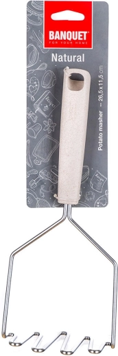 Discover the reliable Natural potato masher, designed for everyday comfort in both home and professional kitchens. The stainless steel wire head ensures smooth mashing and an even puree consistency, while the ergonomic handle made from polypropylene and wheat bran fits well in the hand.