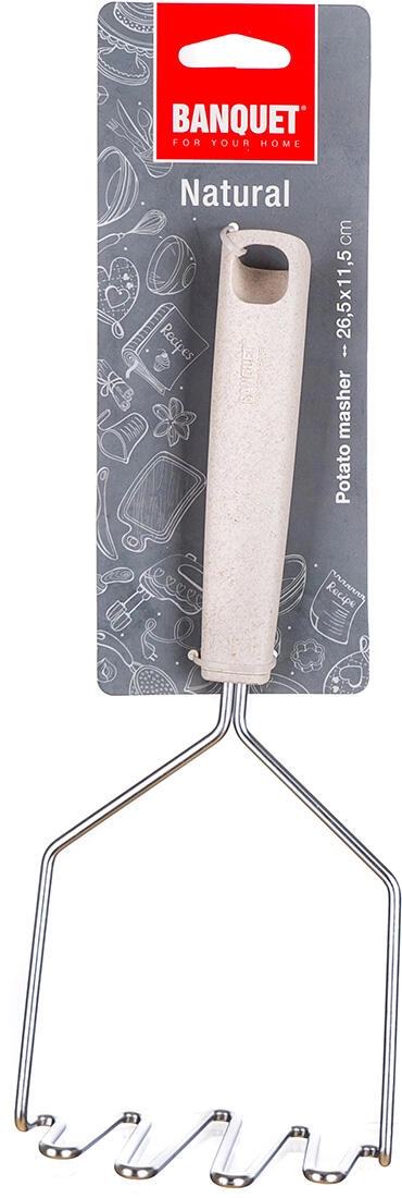 A practical potato masher from the Natural range that combines stainless steel with durable polypropylene reinforced with wheat bran. Thanks to the wired mashing head, you can easily prepare smooth, lump-free mash. The ergonomic handle with a hanging loop sits comfortably in the hand, and the tool is dishwasher safe for quick, worry-free maintenance.