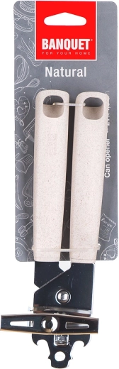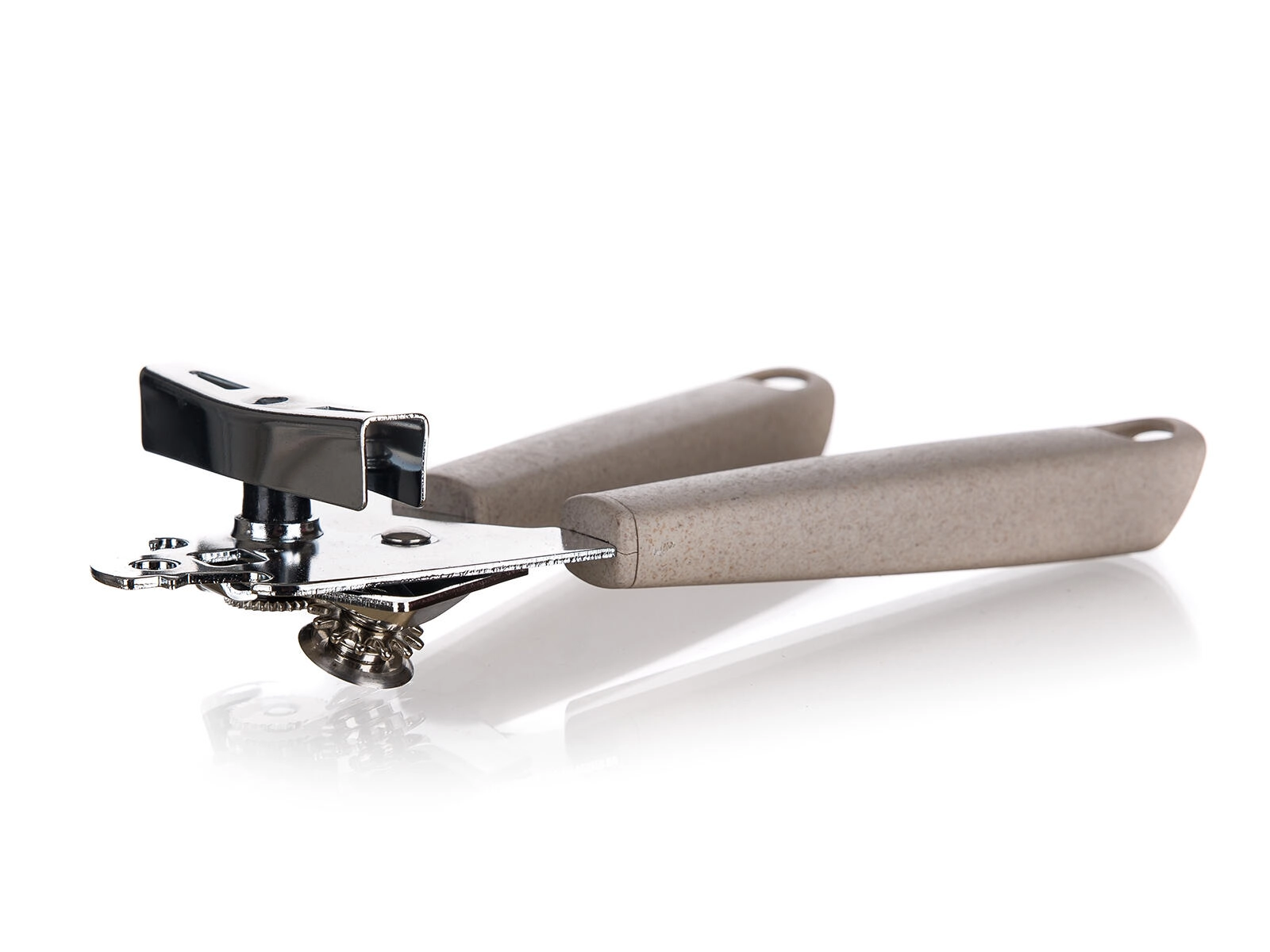 The practical Natural manual can opener combines stainless steel and durable polypropylene with wheat bran for long life and comfortable use. Thanks to its classic wing-style mechanism, it cuts lids smoothly and cleanly, while the ergonomic handles ensure a secure grip and the hanging hole allows for easy storage in the kitchen. Suitable for home and professional use.