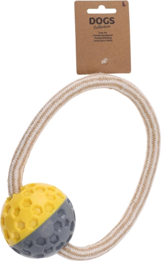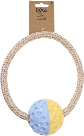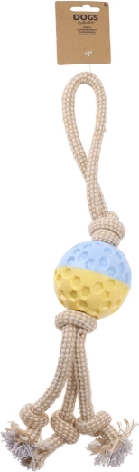 Thanks to the practical loop and knots, the toy is easy to hold, the ball bounces excellently, and the structured surface helps clean teeth during chewing. Available in two sizes for different types of dogs.