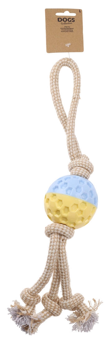 Universal dog toy for everyday fun – a robust rope with a textured TPR ball. Perfect for throwing, fetch, and tug-of-war. The durable combination of TPR and cotton is gentle on teeth, supports dental hygiene, and provides a secure grip for both dog and owner.