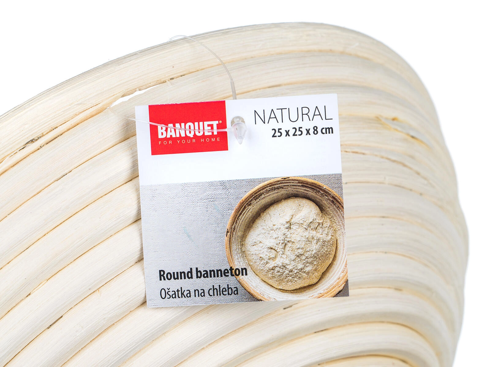 The basket measuring 25 × 25 × 8 cm is lightweight, breathable, and reusable. It is easy to maintain—after use, simply wipe with a damp cloth. For best results, lightly dust the interior with flour or use a linen liner.