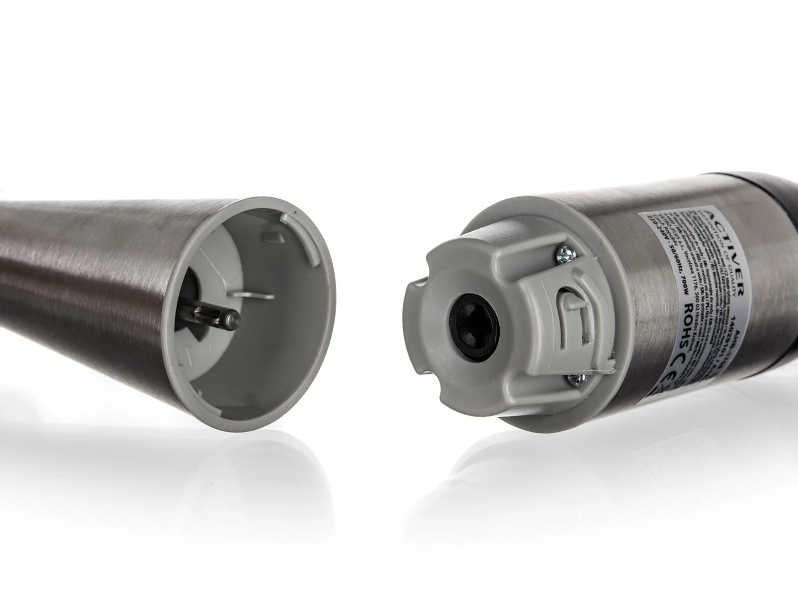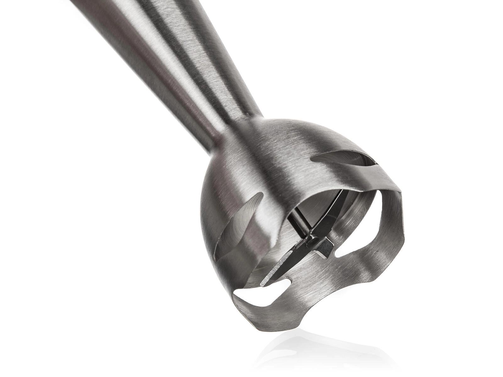 A reliable 700 W hand blender handles creamy soups, sauces, and homemade baby purées. The stainless steel immersion attachment with a blade guard reduces splashing and allows blending directly in the pot. Thanks to the removable leg, maintenance is quick and simple.