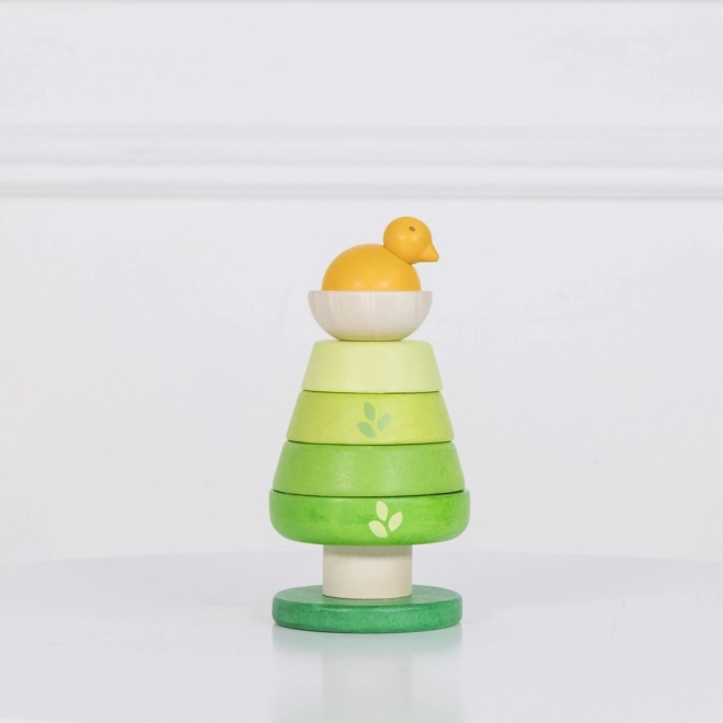 Discover a quality stacking toy shaped like a tree with a cute little bird on top. The pieces in varying shades of green encourage children to distinguish colors and shapes, while the stable base ensures safe play. Thanks to the flexible rod, stacking is comfortable and gentle even for the smallest hands.