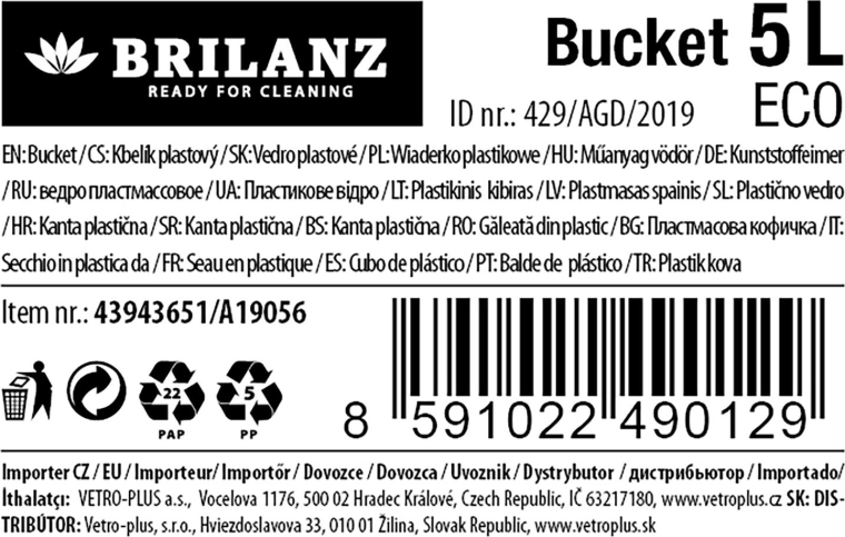 Practical 5 l plastic bucket made from recycled plastic with a pouring spout for easy emptying. Lightweight, durable, and ideal for household cleaning. Available in eco designs grass, water, and earth.