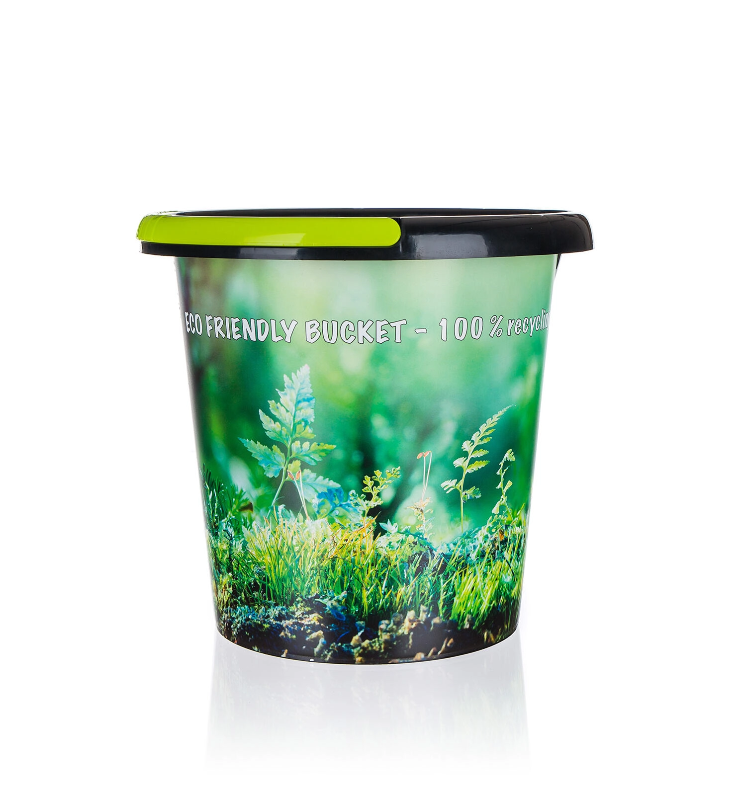 The bucket is made from recycled plastic, conserving resources and reducing environmental footprint without compromising durability.