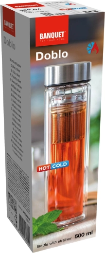 Enjoy your favorite drink anytime, anywhere. The DOBLO bottle is made of borosilicate glass resistant to high temperatures and thermal shock. Its double-walled construction minimizes heat transfer to the surface, making it comfortable to hold while keeping your beverage at the ideal temperature longer—whether it’s hot tea or refreshing fruit-infused water.