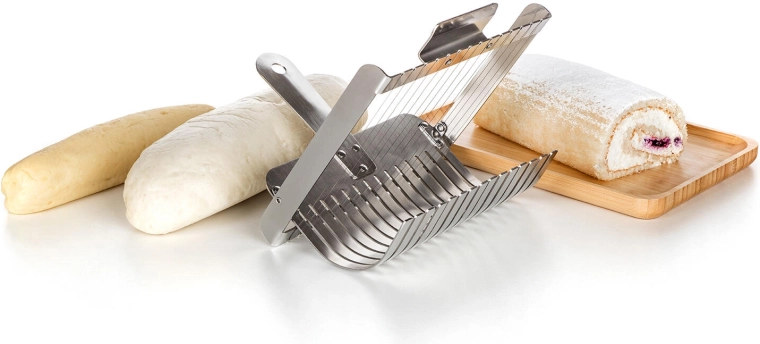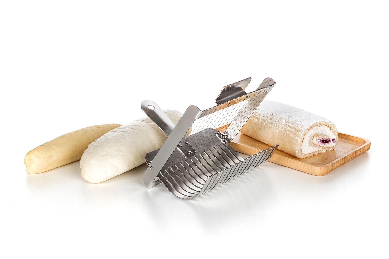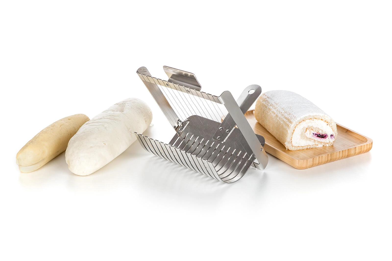 The wire mechanism slices soft dumplings and rolls into clean, uniform pieces without squashing. Excellent results for serving.