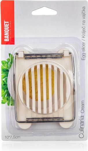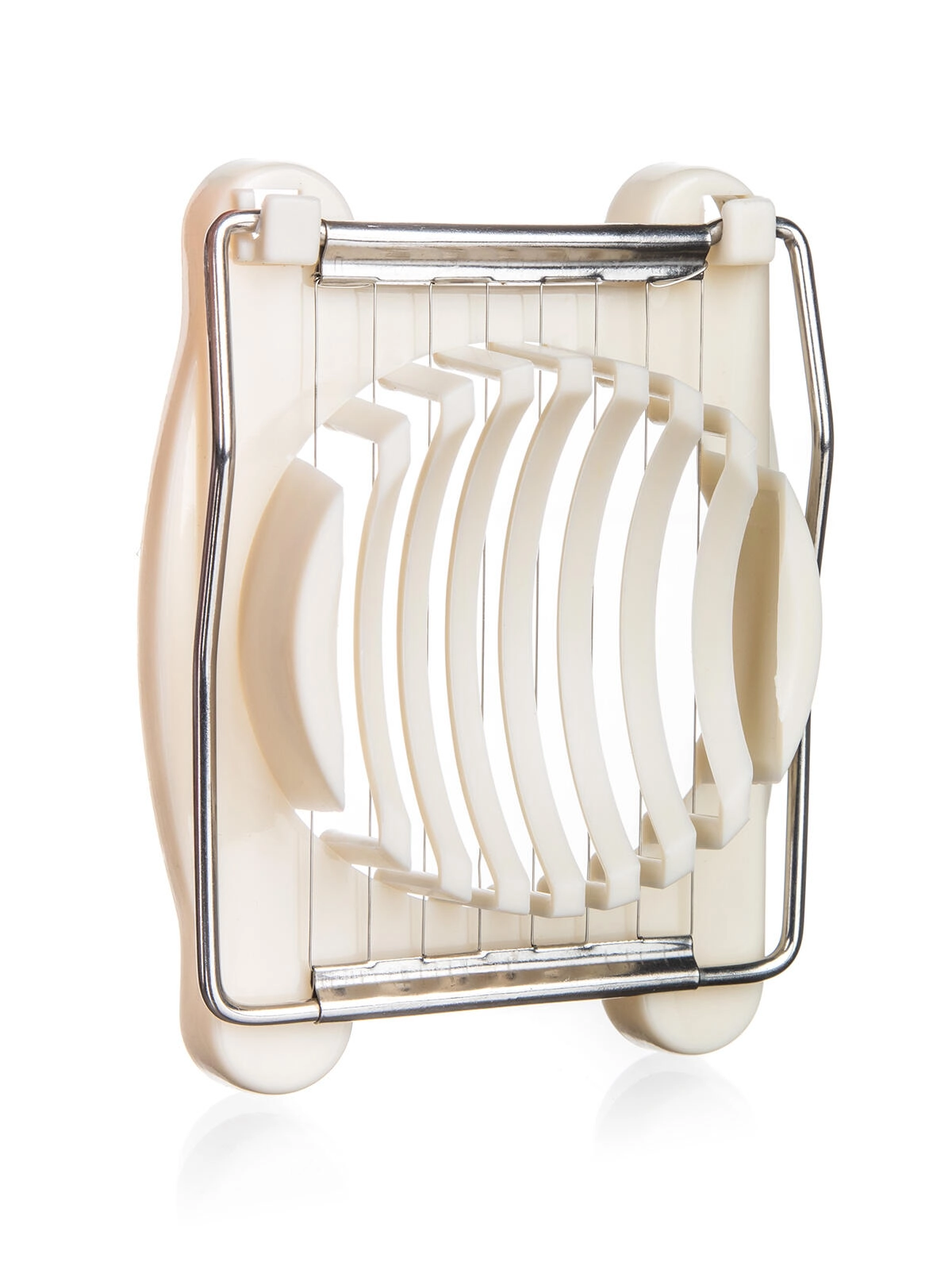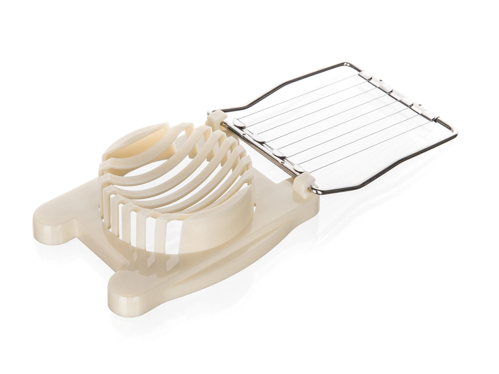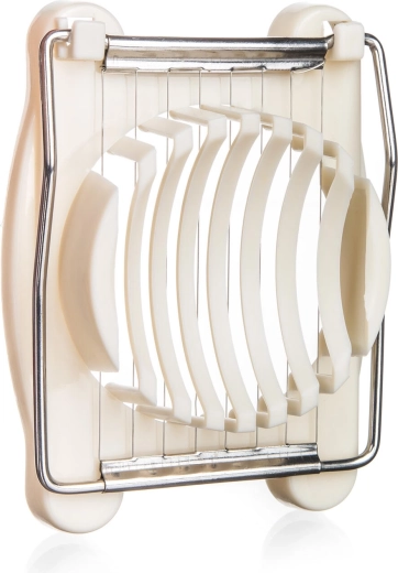 This elegant cream-colored egg slicer combines practical design with speedy operation. The stable base with a contoured cradle secures the egg, while the closely spaced stainless-steel wires deliver clean, consistent cuts without crushing. Ideal for eggs in salads, sandwiches, or decorative plating.