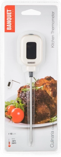 A practical digital kitchen thermometer CULINARIA with a long stainless-steel probe accurately measures the internal temperature of foods in the range of -30 to 250 °C. Ideal for baking, cooking, and grilling, with fast readout on a clear display and a probe made from durable stainless steel.