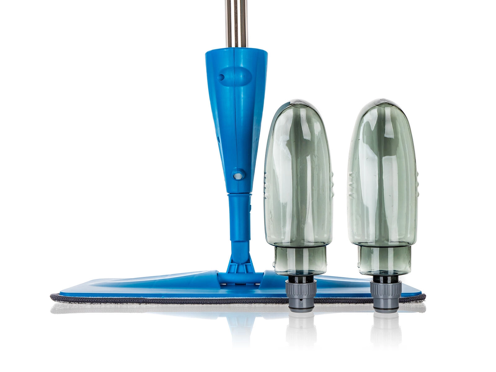 A practical spray mop with a built-in 350 ml tank and two interchangeable reservoirs makes everyday cleaning easy without a bucket. Thanks to the 180° swivel head and a washable microfiber pad, you can easily clean all hard floors without scratching. The ergonomic handle with sprayer dispenses exactly as much water as you need.