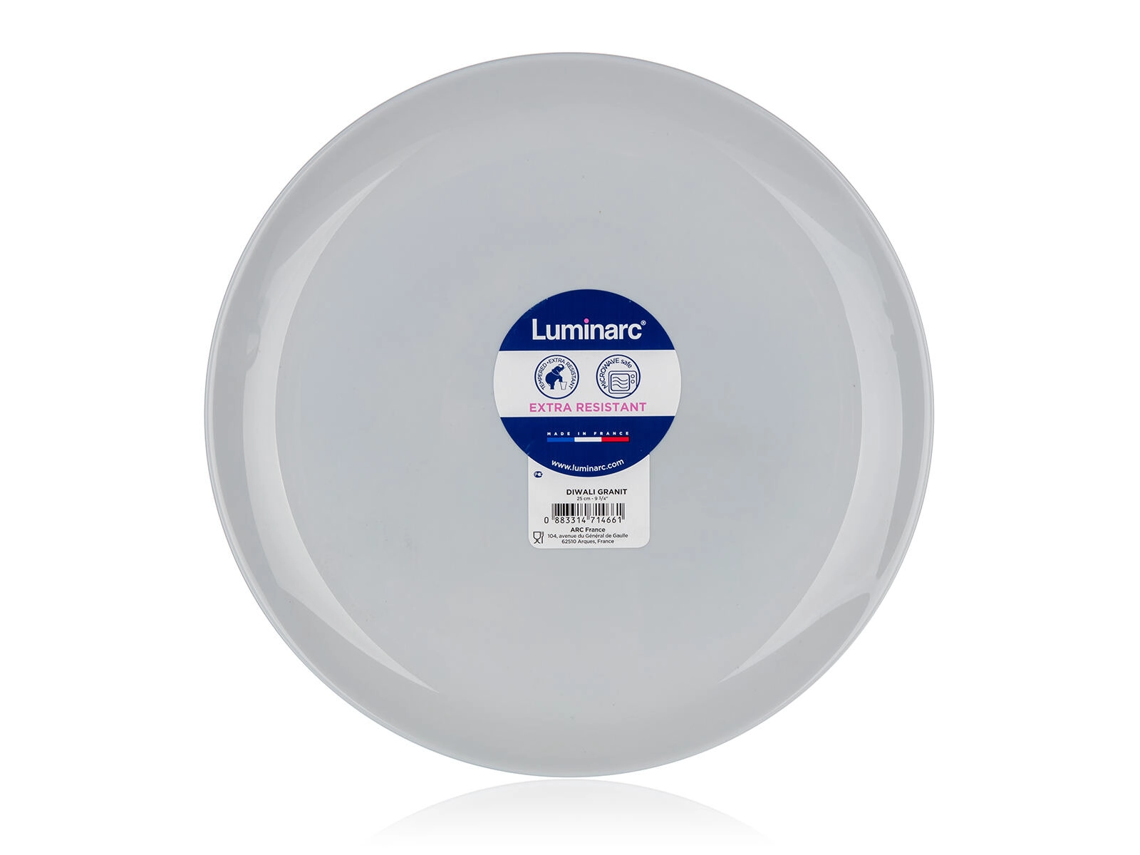 The DIWALI 25 cm shallow plate brings together functionality and style. The tempered glass in an elegant grey shade is highly resistant to scratches, abrasion, and thermal shock, so the plate handles everyday use and more demanding serving with ease.