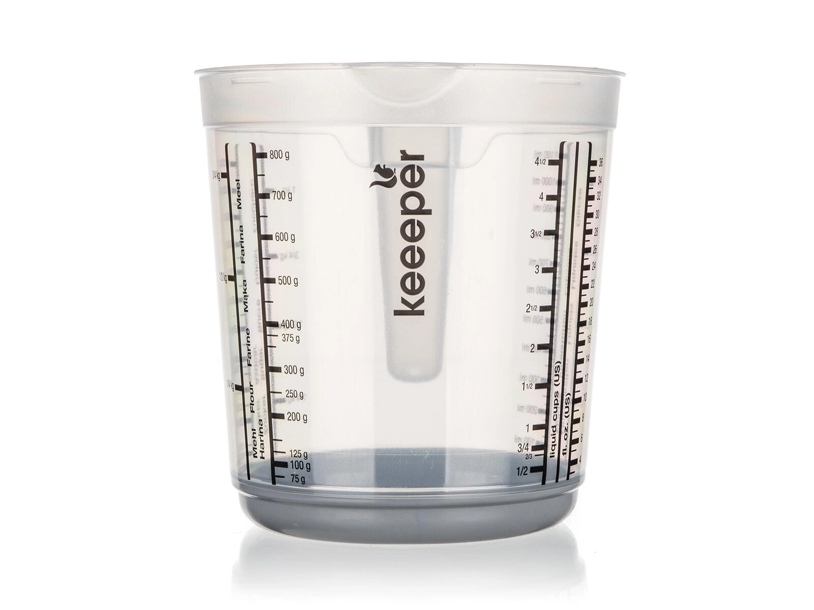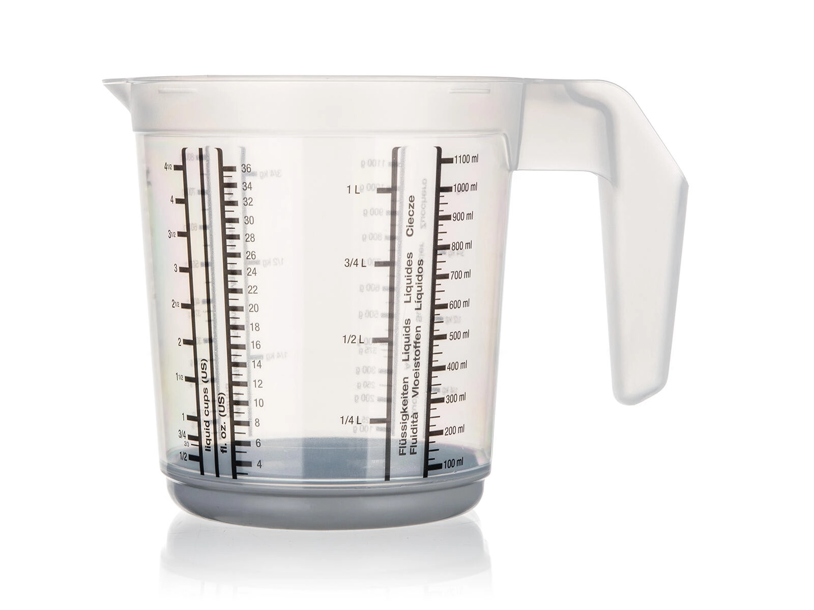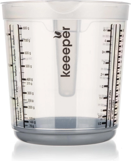 Universal 1 l kitchen measuring cup for precise measurement of liquid and dry ingredients. Thanks to the clear scales in various units and easy pouring, it is a great helper for all cooking and baking.