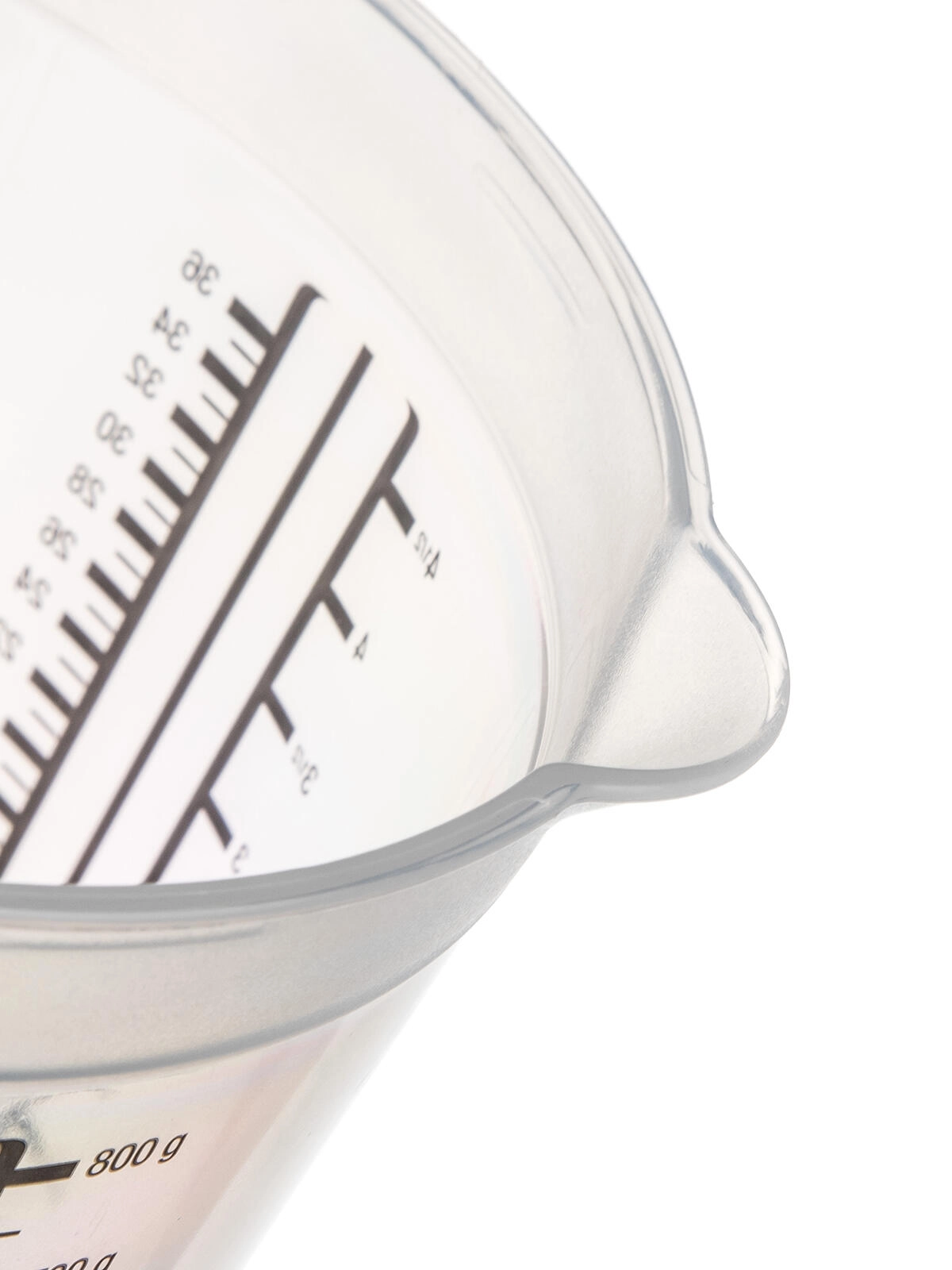 Scales in different measurement units ensure accuracy without time-consuming conversions. The high rim and shaped pouring spout help with clean, smooth pouring without drips.