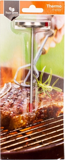 A reliable analog probe meat thermometer with a 12.5 cm stainless steel probe accurately measures the internal temperature of meat in the range of 60–87 °C. The easy-to-read dial with meat-type symbols helps you achieve juicy and safe doneness when roasting or cooking.