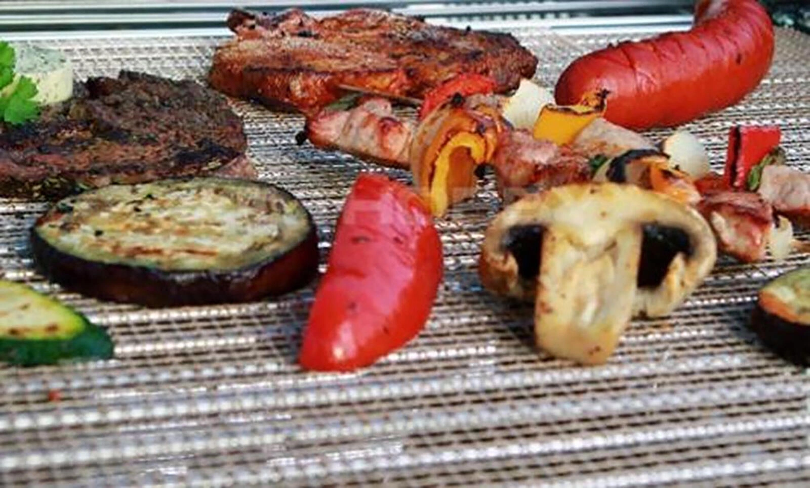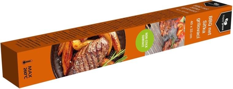 Practical grill mesh with a non-stick surface measuring 40 × 33 cm ensures perfectly cooked smaller pieces of meat, vegetables, or mushrooms without burning or falling through the grate. Suitable for the grill and the oven, with heat resistance up to 260 °C, reusable, and easy to clean.