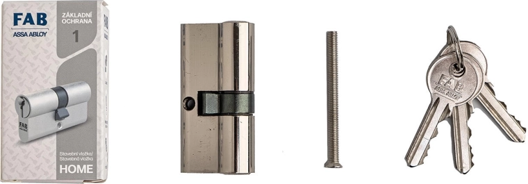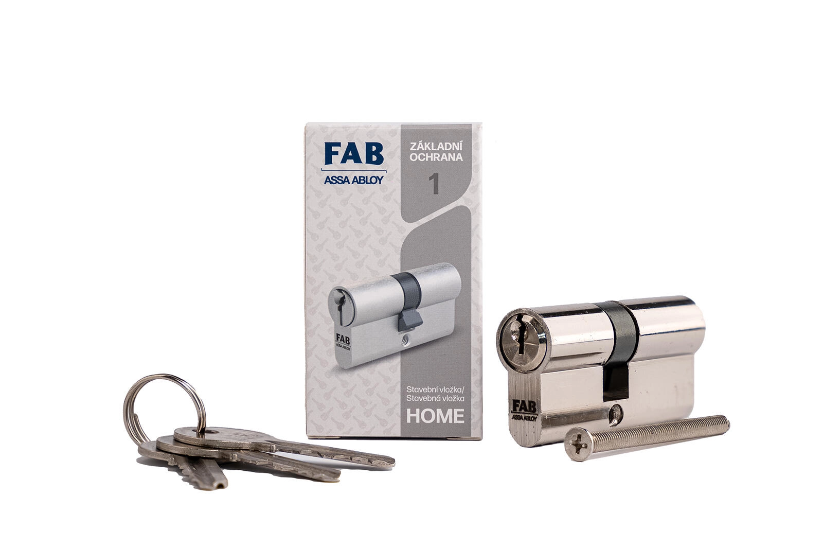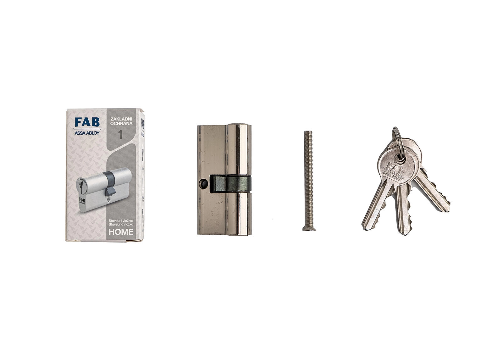 The practical FAB 1 HOME construction cylinder insert in 30/35 mm size provides a basic level of security during construction. It features a 5-pin locking system, a body and plug made of Zamak zinc alloy, and is supplied with 3 steel keys for quick and reliable use.