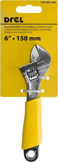 A practical and reliable 150 mm (6") adjustable wrench designed for versatile use. The adjustment screw allows precise setting of the jaw width to the required dimension, so one tool covers multiple fastener sizes.