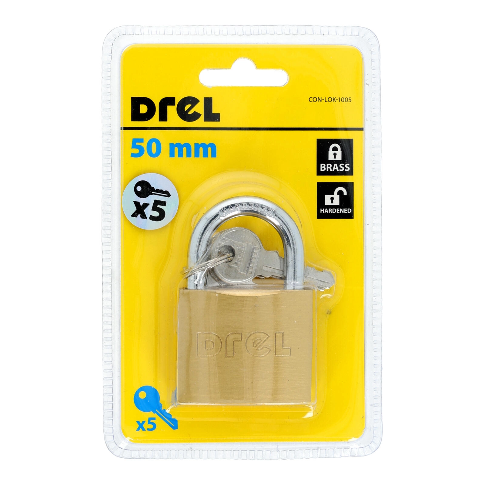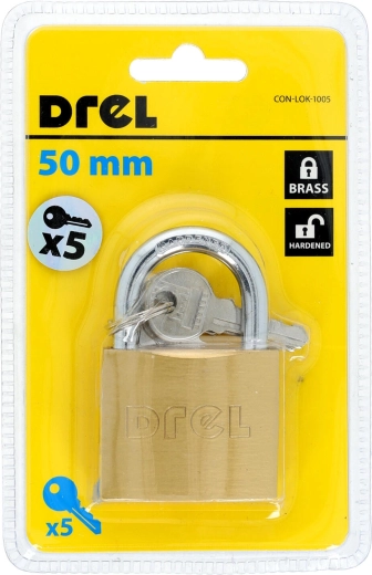 The versatile 50 mm padlock is a reliable solution for everyday security. The brass body resists corrosion and normal wear, making it suitable for indoor and sheltered outdoor use. The package includes 5 keys, so you can easily share access with family or colleagues.