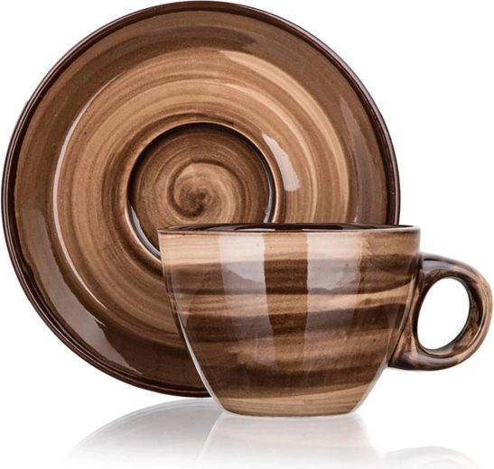 Elegant brown marbling and a glossy glaze give your table a premium look, while the saucer provides stability and catches drips.