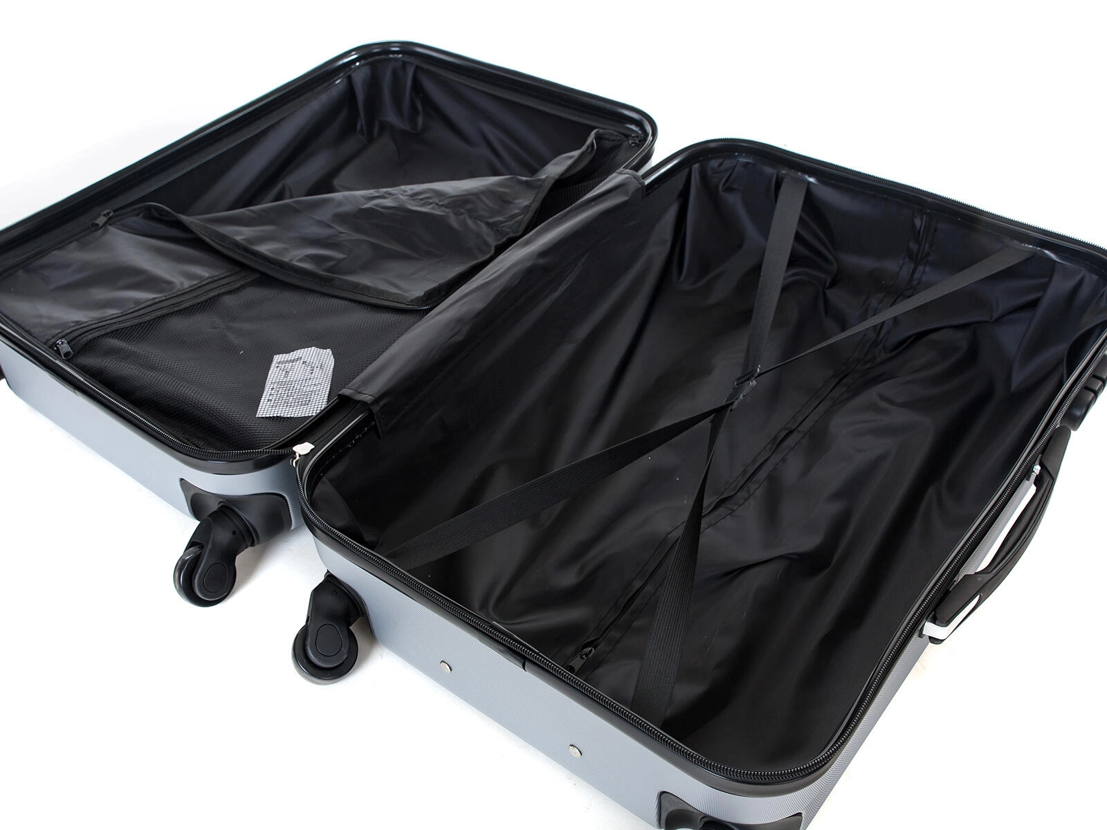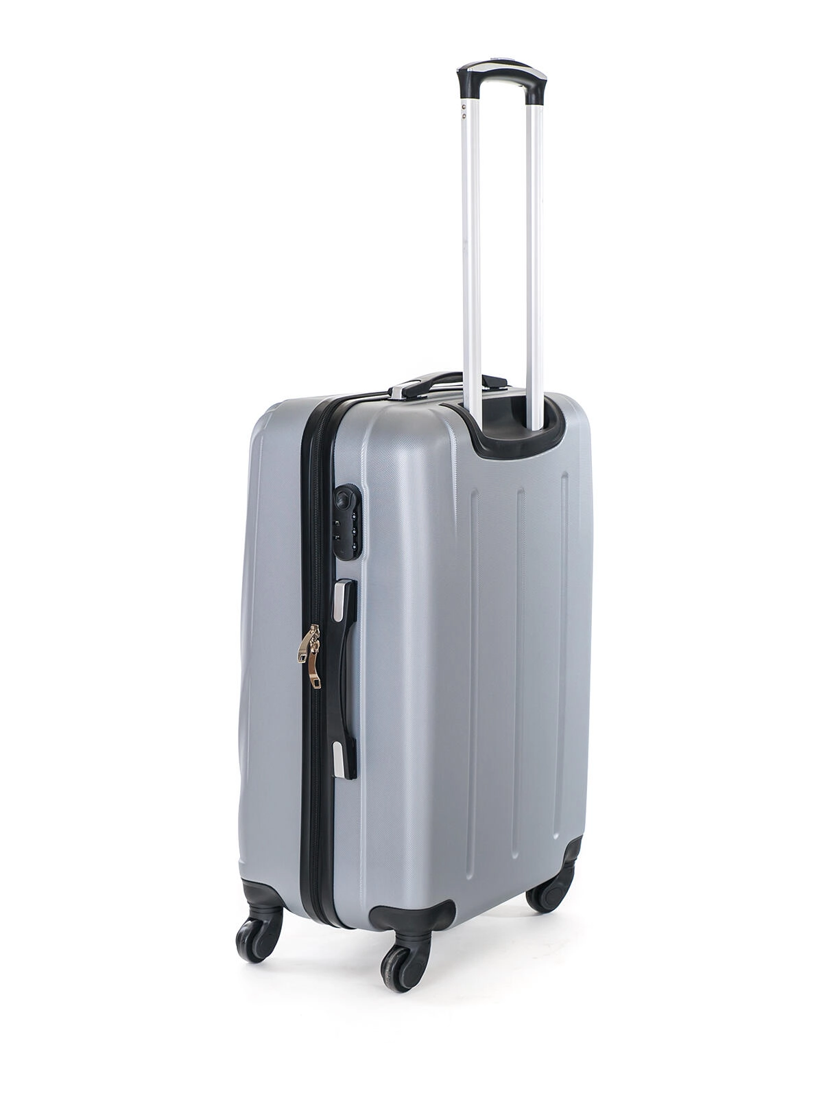 This practical and stylish size M suitcase in grey combines durability and comfort. The high-quality ABS shell protects contents from impacts, while four 360° multi-directional wheels ensure smooth handling in airport terminals and on the street. Thanks to the height-adjustable telescopic handle and multiple carry handles, the suitcase is easy to pull and carry.