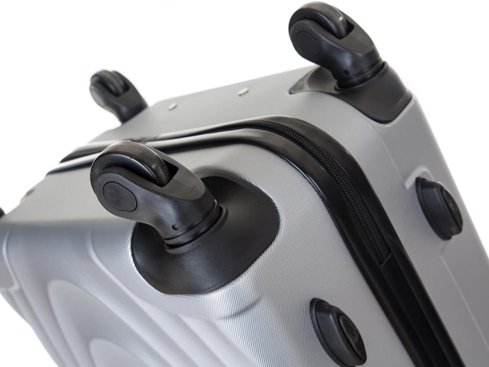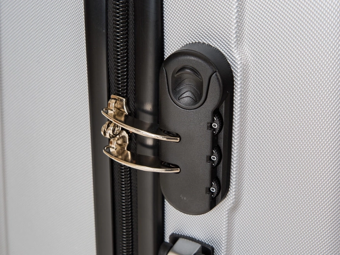 The elegant gray hardshell suitcase is made of sturdy ABS plastic, which excellently resists impacts and wear. Thanks to the 360° spinner wheels and telescopic handle, moving through the airport or city is smooth and effortless. The zipper with the option to join sliders into a combination lock protects the contents from accidental opening.