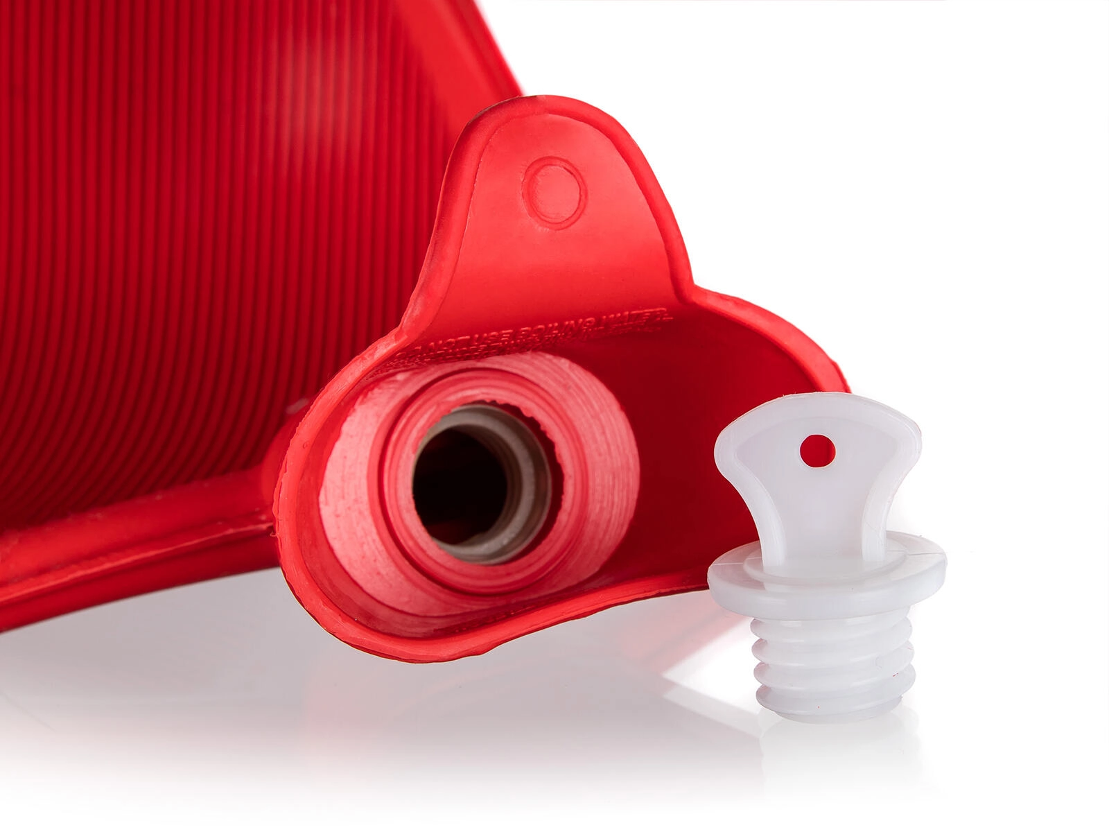 A quality red rubber bottle with a ribbed surface ensures better heat distribution and a secure grip during handling.