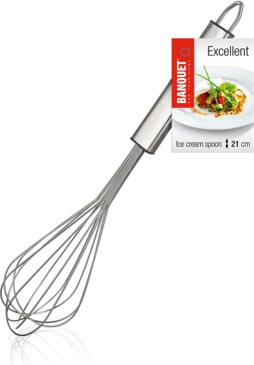 Discover a reliable helper for everyday cooking and baking. The stainless steel 30 cm EXCELLENT whisk ensures efficient, effortless whipping and long service life thanks to high-quality stainless steel. The ergonomic handle fits perfectly in the hand, and the end loop allows convenient storage by hanging.