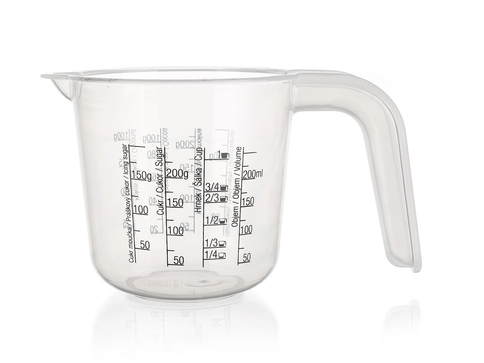Practical plastic measuring cup with a capacity of 0.25 L for easy and precise cooking and baking. Thanks to the clear scales for both dry and liquid ingredients and markings in ml and cups, you can measure everything quickly and accurately. The cup is lightweight, durable, and suitable for everyday use in the kitchen.