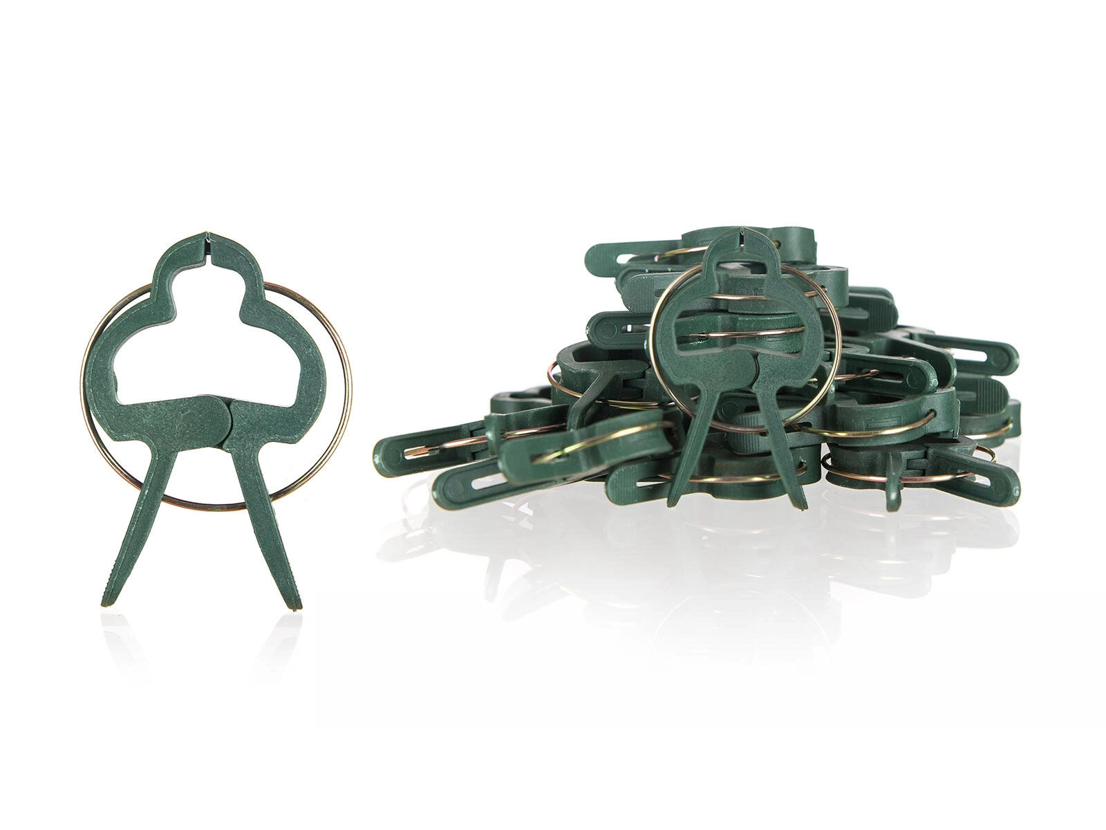 The plastic body with a metal spring ensures long service life. The clips are easy to open, reposition, and reuse throughout the season.