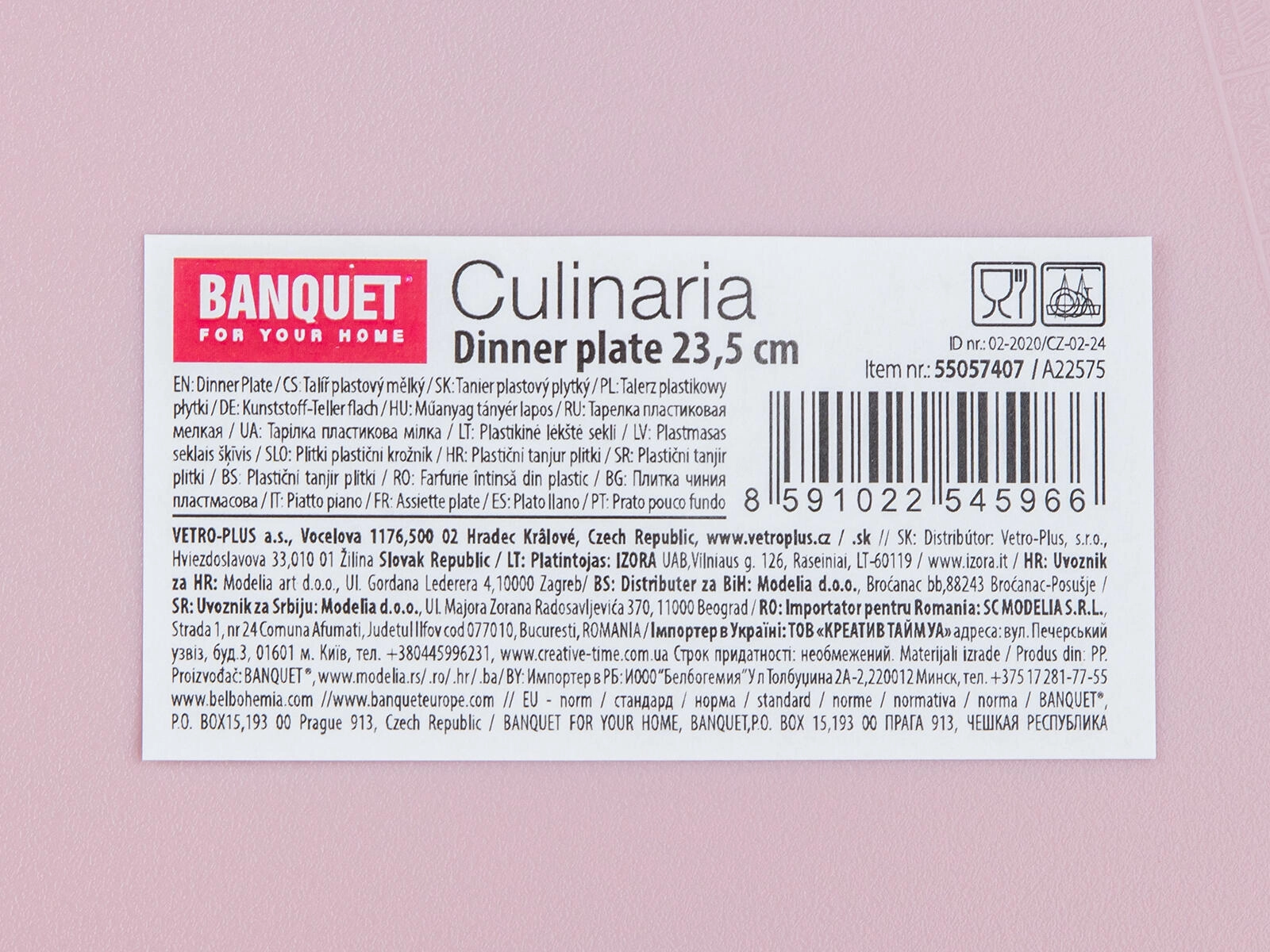 shallow plastic plate 23.5 cm pink CULINARIA