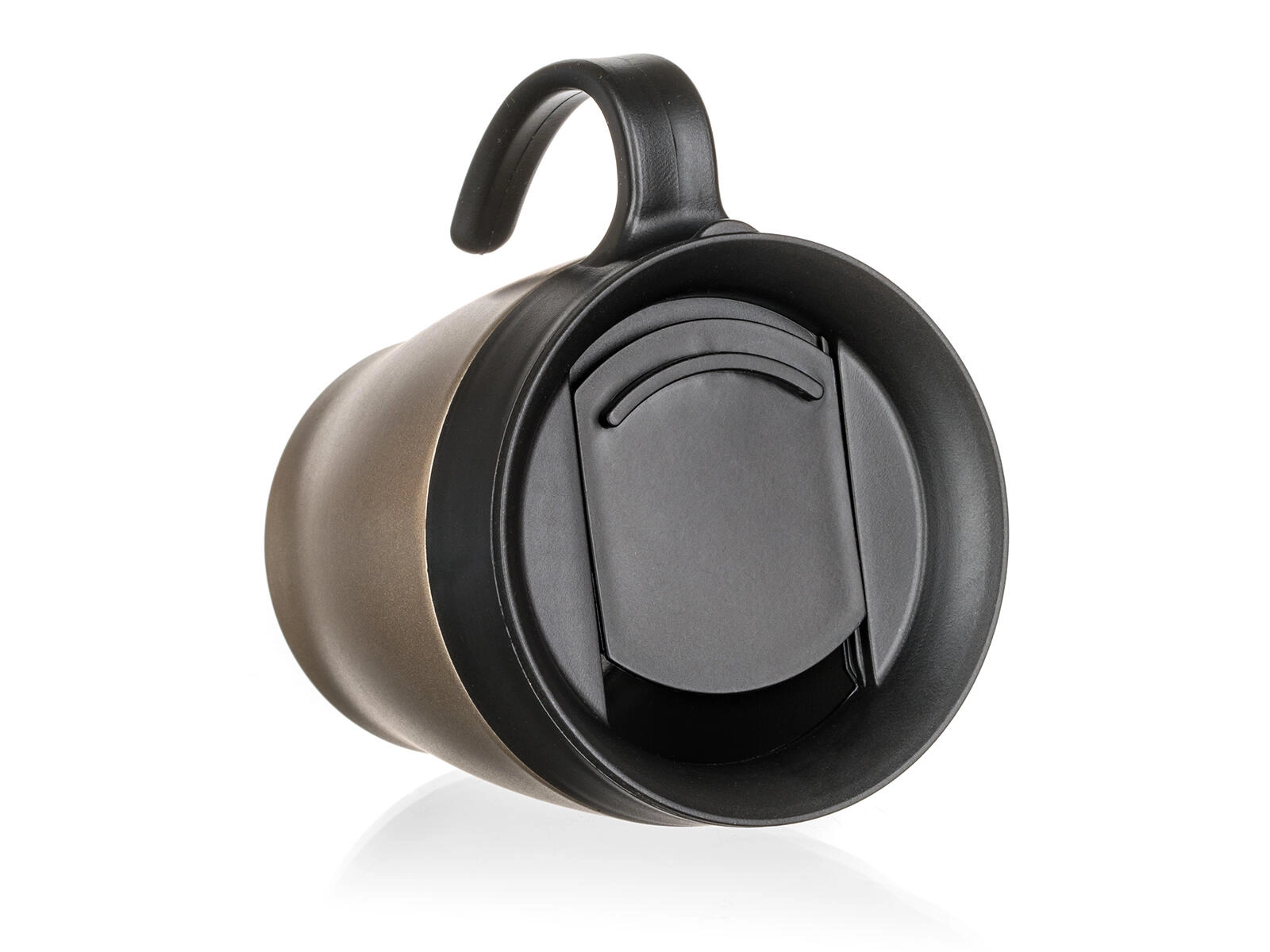 The practical lid with an integrated opening minimizes spills while walking or driving. For safety, keep the mug in an upright position.