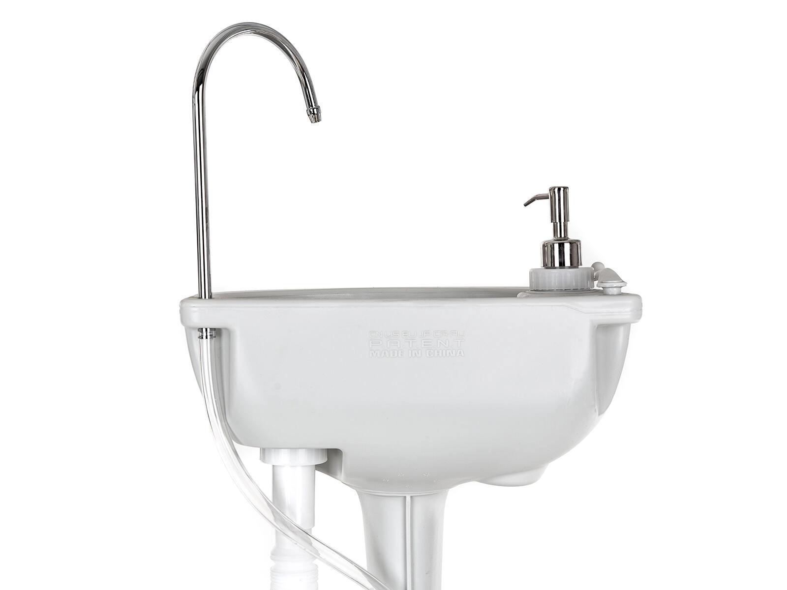 Keep your hands clean even without a traditional water connection. This portable freestanding sink provides stable, comfortable handwashing thanks to a foot-operated pump that ensures a smooth, touch-free water flow. The integrated liquid soap dispenser and towel hook enhance convenience for everyday outdoor use.